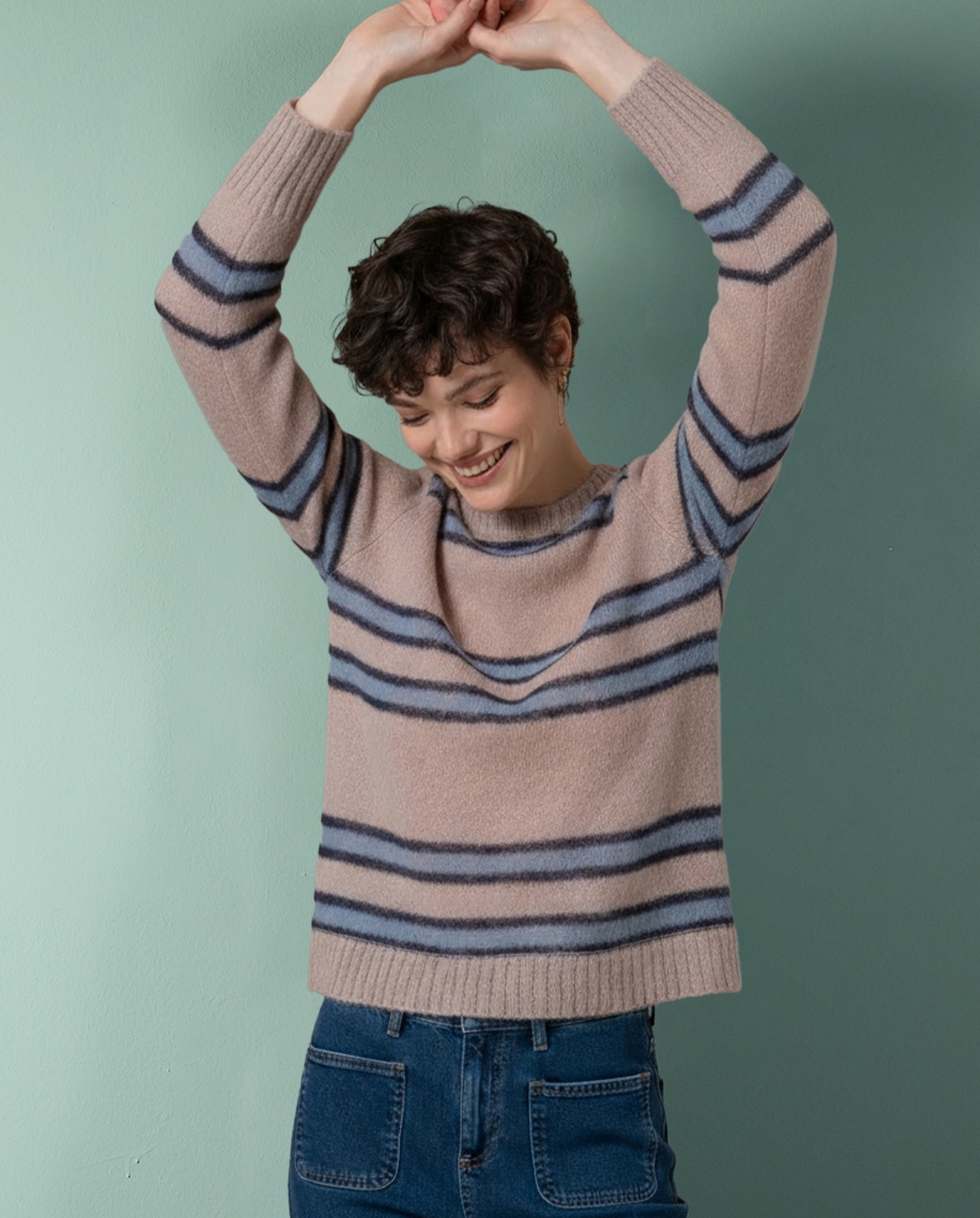 Jersey de punto con diseño que simula cuadros grandes, aportando una textura visual muy original. Corte recto y cómodo, con cuello redondo y acabados en canalé. Su mezcla ligera de nylon y lana lo hace suave y agradable al tacto, perfecto para los dí