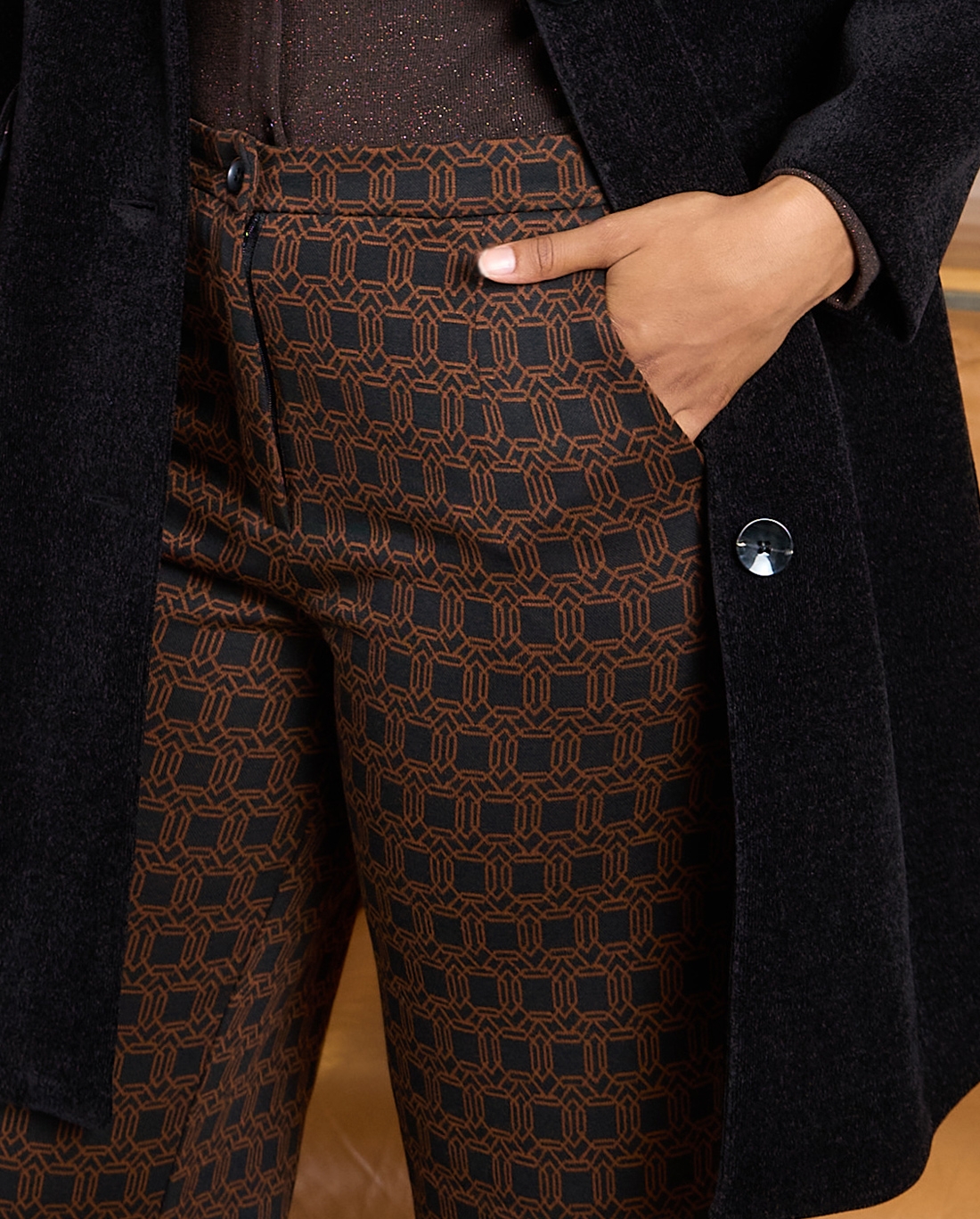 Pantalón recto con print geométrico Negro